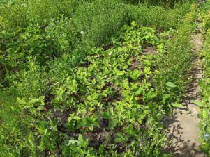 Растут фруктовые молодые деревья, грецкий орех, молодая и очень вкусная клубника.