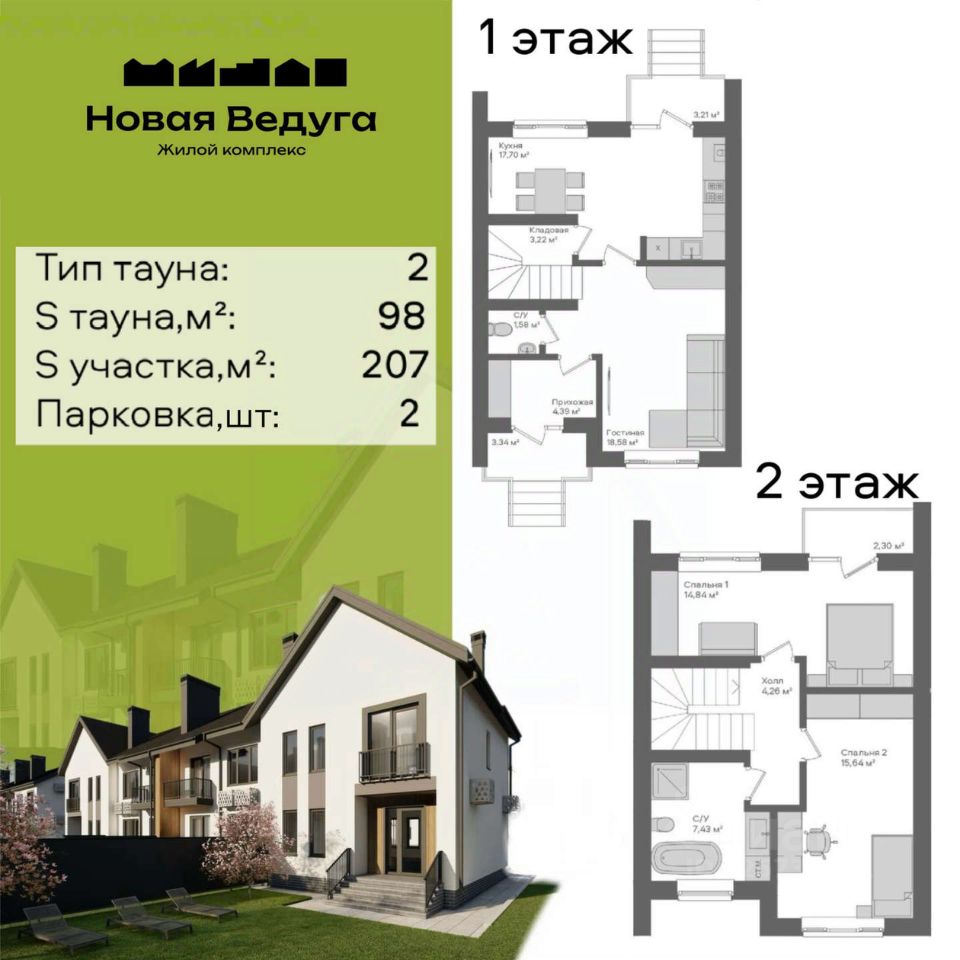 Продается жилой дом блокированной застройки площадью 98 кв.м с собственным земельным участком 270 кв.м в ЖК "Новая Ведуга"!