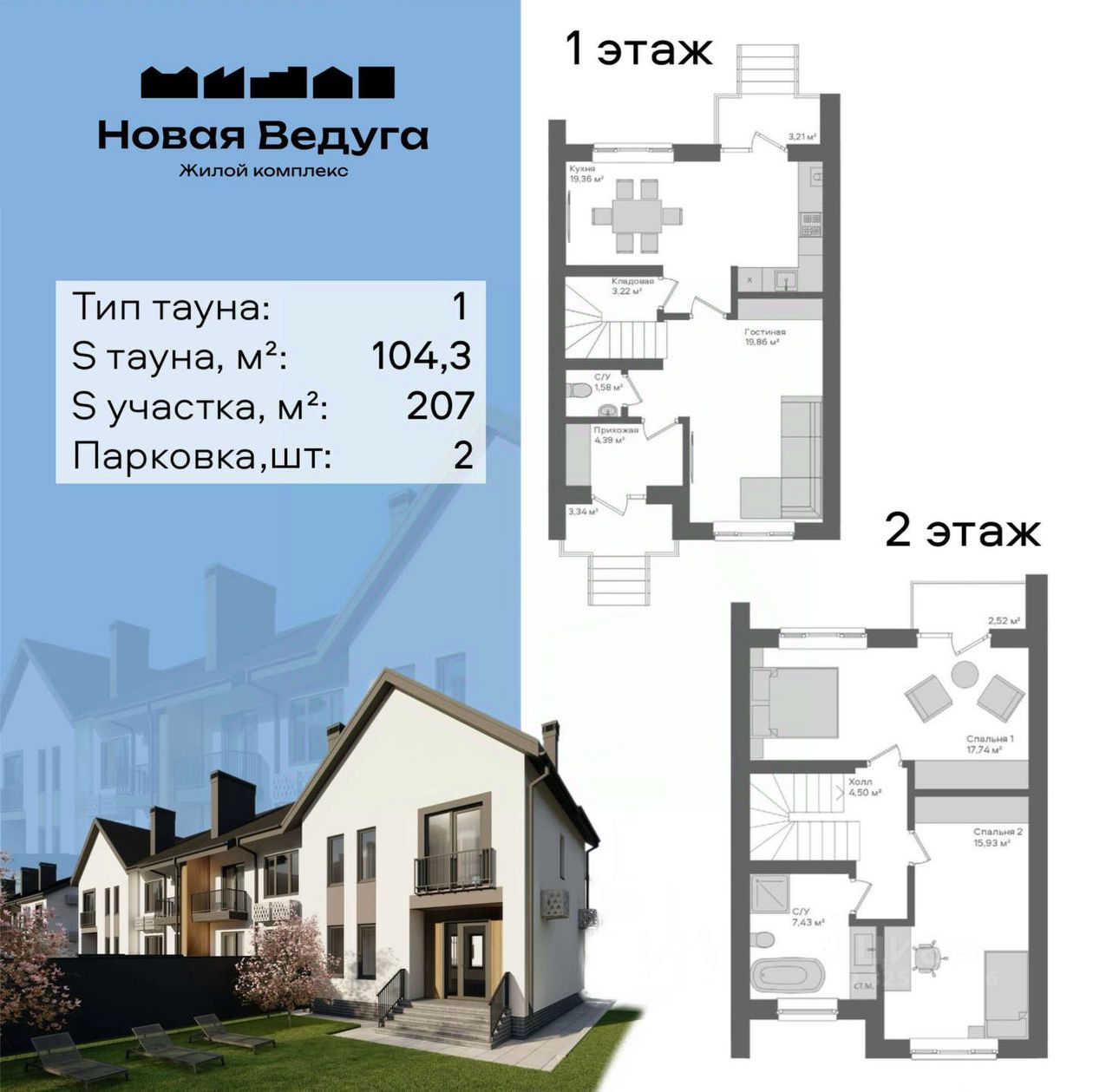 Продается жилой дом блокированной застройки площадью 104,3 кв.м с собственным земельным участком 270 кв.м в ЖК "Новая Ведуга"!