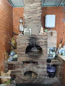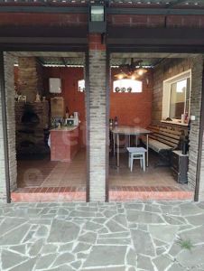 В доме на первом этаже расположены : кухня ( 12кв.м ) , две жилые комнаты ( 12 и 9.5 кв.м ), большая летняя веранда с камином (18 кв.м ) .