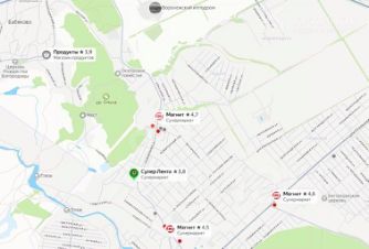 До ближайшего магазина "Магнит" пешком по живописной местности 16 минут, на авто 4 минуты