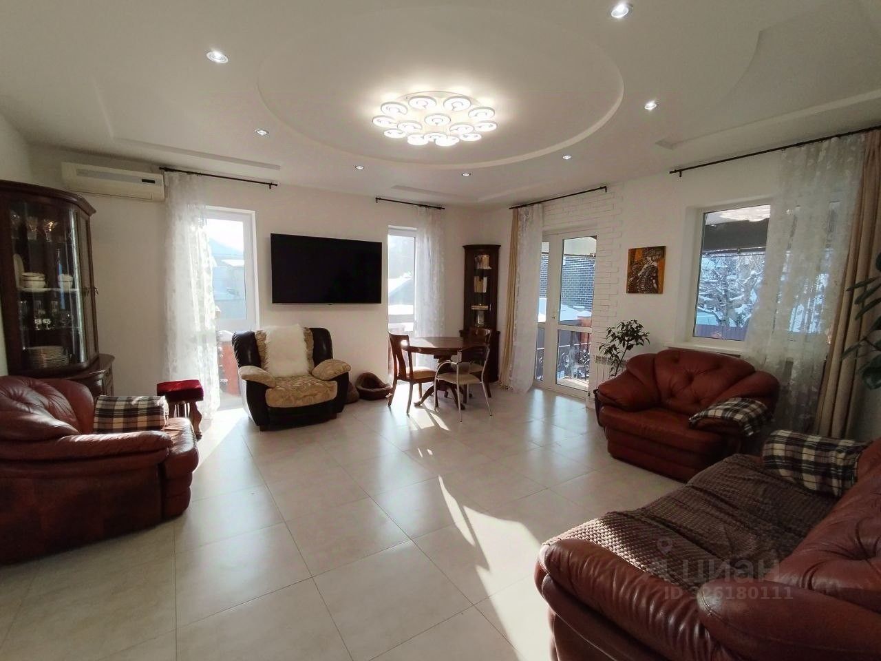 Просторная гостиная, с выделенной зоной кухни и выходом на террасу