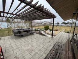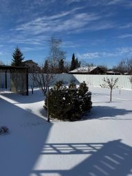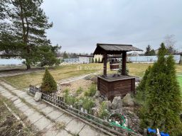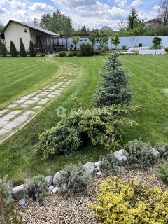 Участок 12 соток — ровный, правильной формы, ухоженный. Сделан ландшафтный дизайн. Много взрослых декоративных и плодовых деревьев и кустарников. Огромная зона плотного английского газона — идеально для игр с детьми, футбола и летних вечеринок.