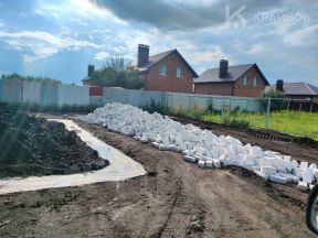 Теплый водяной пол, стяжка пола, стены под обои или покраску стен, электрическая разводка по всему дому. Большие витражные французские окна двухкамерные с тройным стеклопакетом, входная дверь 130 см. Планировка удобная, ничего лишнего, просторная кухня гостиная с прекрасным видом на луг. Скважина, септик из двух колец.