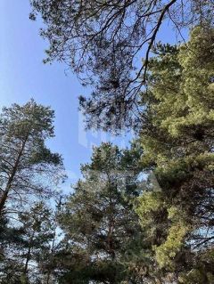 Участок ровный, правильной прямоугольной формы , на участке растут сосны.
