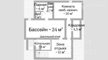 • Супер-бонус: банный комплекс с бассейном на цокольном этаже (зона отдыха, душевая, туалет, парная)