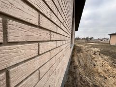 Материал стен: газосиликат 250 мм + утеплитель 100мм + кирпич 120 мм.