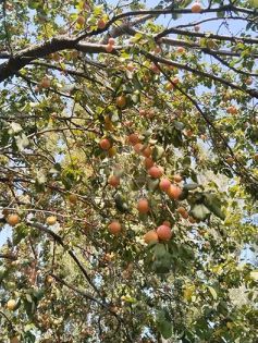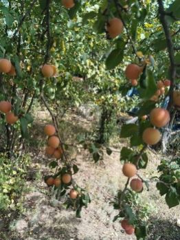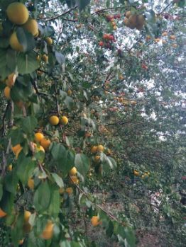 Территория участка облагорожена, растут плодовые деревья и цветы.