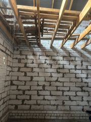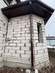 Объект находится в стадии строительства, дом возведен на фундаменте 1200 мм, стены из газосиликатного блока 300 мм, смонтирована и утеплена скатная крыша из металлочерепицы с полноценной системой водостока и снегодержателями.