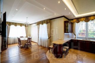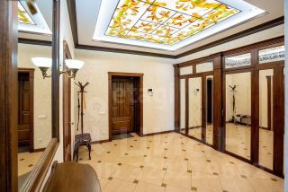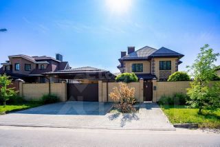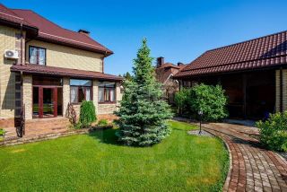 Земельный участок площадью 1500 кв.м: ровная, ухоженная территория огорожена кирпичным забором, оборудована системой видеонаблюдения, полива и ландшафтным освещением. Строения соединяют садовые дорожки, выложенные плиткой.
