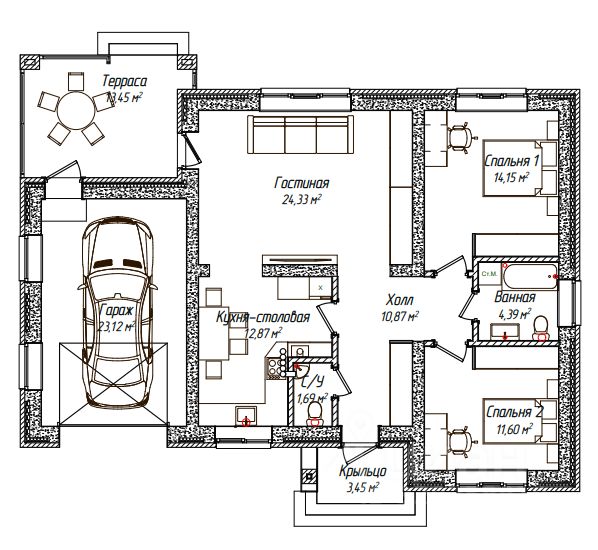 Функциональные помещения: Просторная кухня-гостиная;
