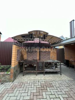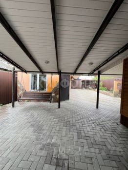 Придомовая территория имеет палисадник, огорожена. Есть большой гараж и парковочное место возле дома. Место для отдыха во дворе, уличные качели, зона для барбекю. Клумба для посадки растений. Вольер для собаки. Полноценная летняя кухня 15 кв. м., хозяйственные постройка, хорошо освещенная, с встроенными деревянными и металлическими стеллажами, можно по желанию переоборудовать. Двор ухоженный, частично под навесом, качественно облагорожен плиткой. Летний душ с освещением, стены панельные, пол плитка.
