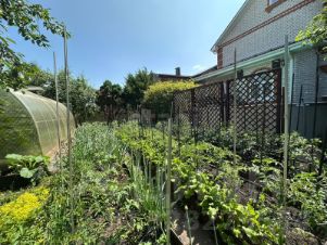 Во дворе разместились и беседка, и летний бассейн, и теплица, и даже сарай для курочек. Много деревьев и плодовых кустарников, грядки, урожая хватает для большой семьи.
