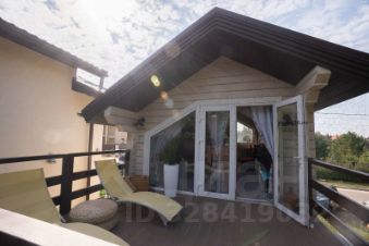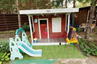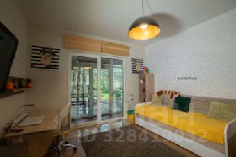 На участке площадью 12 соток организован ландшафтный дизайн с системой авто-полива, грамотное зонирование отлично сочетает: декоративный пруд с водопадом, зону отдыха, зону барбекю, детскую игровую площадку с уютным домиком, батутом и песочницей.