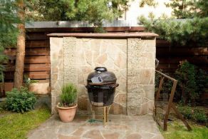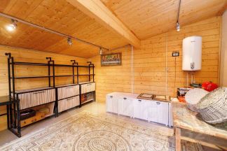 В участок гармонично вписаны постройки из клееного бруса: баня с дровяной печью, просторная мастерская, гостевой дом с зоной chillout.