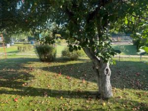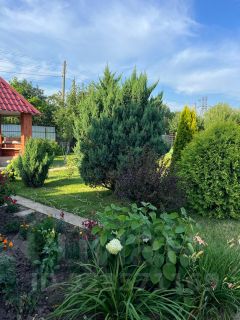 с плодовыми и хвойными деревьями, цветами и кустарниками.