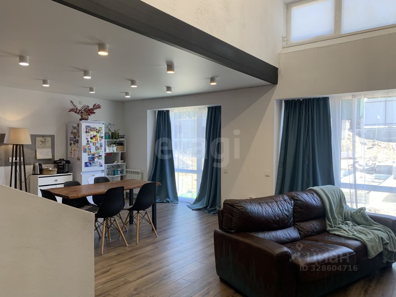 * Второй уровень: просторная кухня-гостиная с панорамными окнами