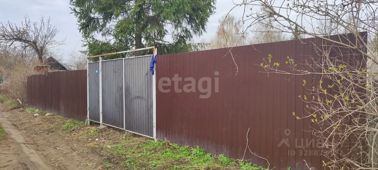 На участке остался только забор и здоровая яркая атмосферная елка. Забор по фасаду - профнастил шоколадного цвета, по периметру - сетка рабица. Есть функциональные ворота с засовом и калитка с рабочим замком.