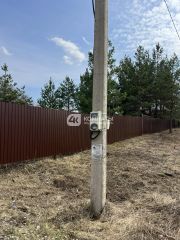 Участок огорожен забором из металлопрофиля, имеются ворота с двух сторон для заезда автомобиля и калитка. Скважина, рядом с участком световой столб и газовая труба. Угловой (соседи только по одной стороне). Межевое дело. Еловые деревья. Размеры 30*40.