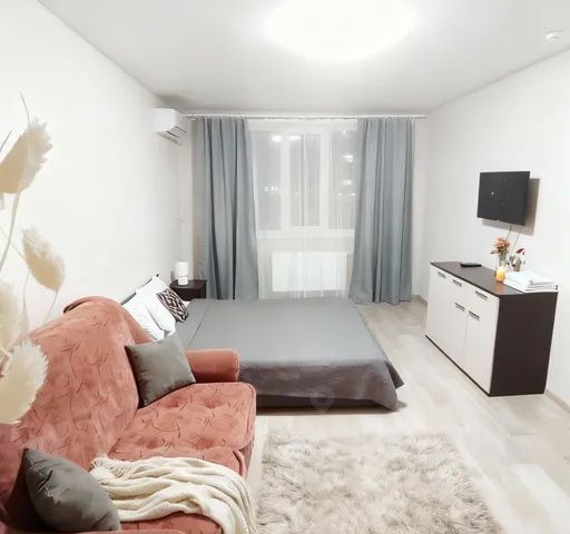Уютная комната с кроватью 160*200 и большим шкафом, туалетный столик с зеркалом, шторы блекаут для вашего комфортного сна.
