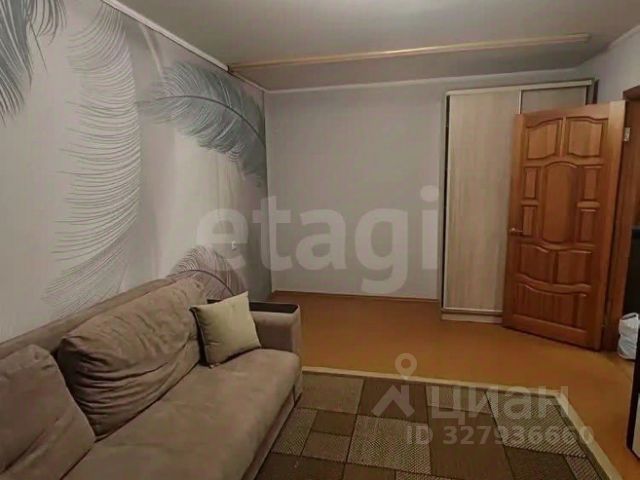 В комнате стоит диван шкаф есть телевизор , пластиковые окна .