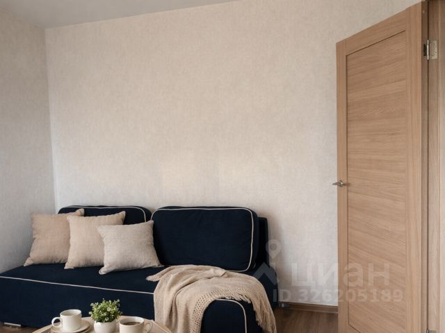 Студия расположена на 14 этаже (есть лифт), в интерьере — современный минимализм с тёплыми акцентами.