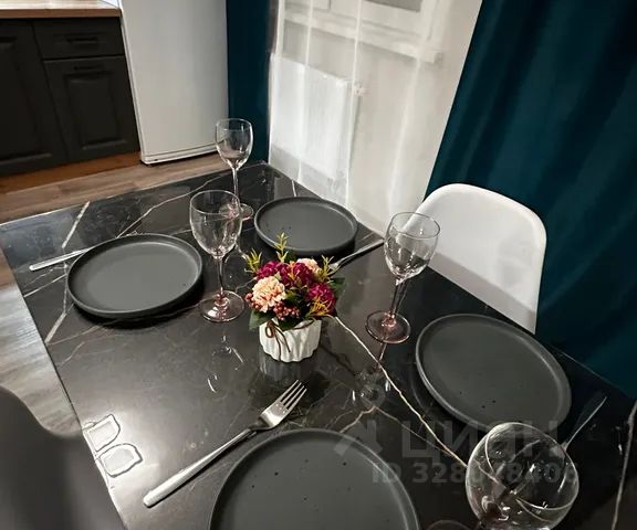 Кухонная зона с обеденным столом, стульями, современным кухонным гарнитуром, варочный панелью, холодильником, микроволновой печью, электрочайником, посудой и всем необходимым для приготовления вкусных блюд. Для вашего удобства есть фильтр питьевой воды.