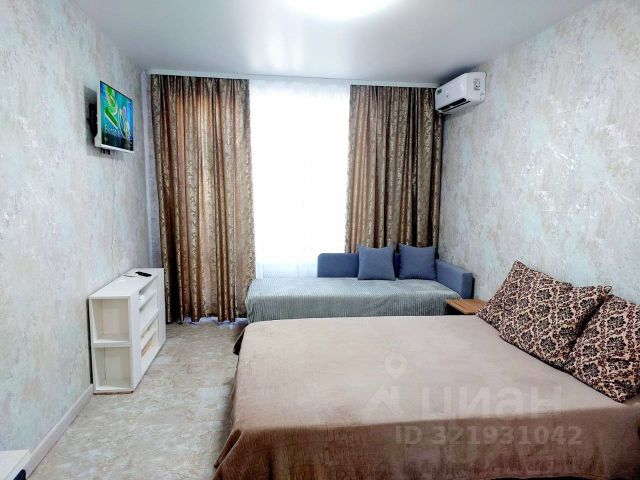 Уютная студия. Свежий ремонт,новая мебель,бытовые приборы. Есть посуда и всё необходимое для проживания. Дом новый. В соседнем доме магазин пятёрочка,маркет плейсы,парикмахерская. Заселение после трёх,но можно и по договорённости.