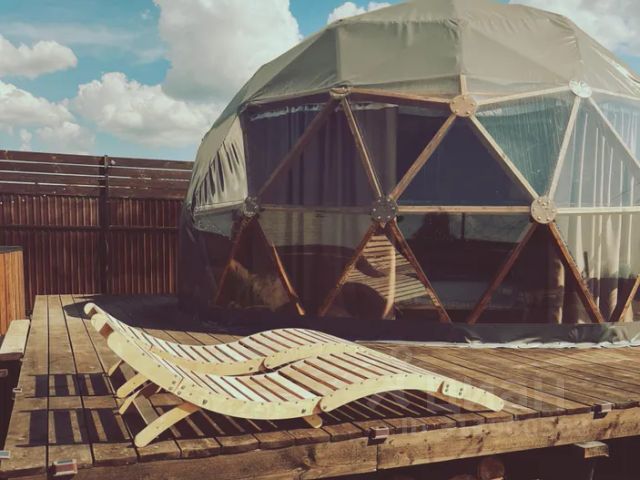 Домик-геокупол с чаном джакузи (чан оплачивается отдельно) Для двоих! Романтика для вашей второй половинки. Наш новый домик-купол создан для уединения, для романтических встреч, для того чтобы провести время вдвоем и насладиться этим временем. Свидание — звучит романтично и так атмосферно. То, что нужно влюбленным парам. Представьте, на столе вкусные закуски, ваши любимые напитки, свечи и лепестки роз. Вы вдвоем, на фоне ваш любимый фильм или музыка. Мы готовы вам помочь в организации свидания. Украсить дом, накрыть на стол. Подготовить горячий чан. А вам останется только приехать со второй половинкой. Можете сделать это сюрпризом! (Оформить заказ свидания возможно минимум за сутки до даты заезда в домик) Перед нажатием "Забронировать" обязательно ознакомьтесь с нашими условиями. Время заезда с 15:00, время выезда до 12:00. Залог 2000 ₽ при заселении (возвращается в день выезда, после уборки домика). Купель джакузи 3500 ₽. В доме есть: двуспальная кровать, холодильник, микроволновая печь, варочная плита, чайник. Водонагреватель, фен, конвекторное отопление.