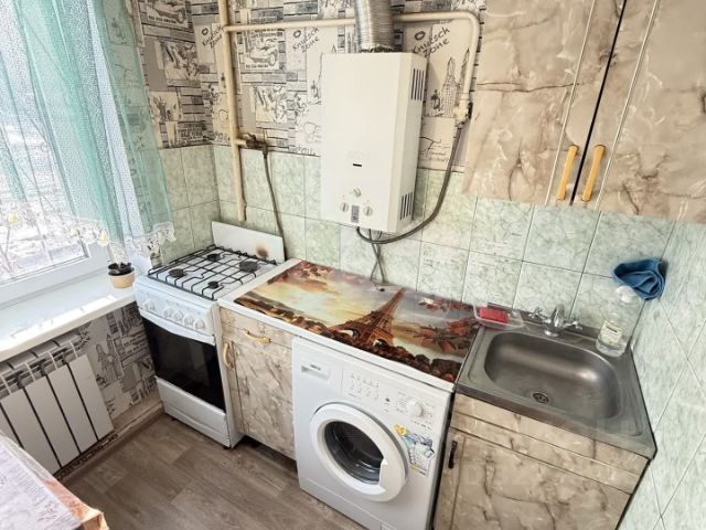 Квартира расположена на первом этаже кирпичного дома и полностью укомплектована необходимой мебелью, так что вам не придётся беспокоиться о дополнительных расходах на обустройство. Здесь вы найдёте практичный кухонный гарнитур, холодильник, стиральную машину и телевизор, а также доступ к Wi-Fi для комфортной работы и отдыха. Санузел удобно совмещённый, а ванная комната станет прекрасным местом для релаксации. Следует отметить, что диван не раскладывается, а одна часть шкафа закрыта на ключ, поэтому это следует учитывать при планировании пространства.