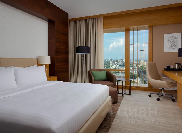 Просторный, светлый двухкомнатный номер, общая площадь 53,7 кв. м. В прихожей большой удобный гардероб для верхней одежды. Гостиная обустроена мягкой мебелью, телевизором, журнальным столиком, обеденным столом, электрочайником, набором посуды. Дверь закрывается электронным замком. В спальне расположена двуспальная кровать, шкаф, туалетный столик, телевизор. Ванная комната оборудована душевой кабиной, биде, феном, косметическим зеркалом, туалетными принадлежностями.