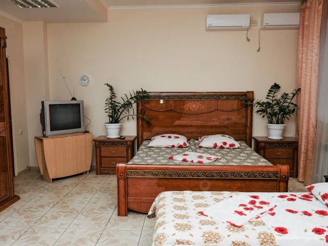 Приглашает гостей для приятного отдыха. Абсолютно новый ремонт, новая мебель и все необходимое для комфортного проживания 4 человек. В каждом номере своя ванная комната, одноразовые средства гигиены. Так же вся электротехника необходимая для уютного отдыха. Во дворе большая парковка. Будем рады видеть вас у нас в гостях!