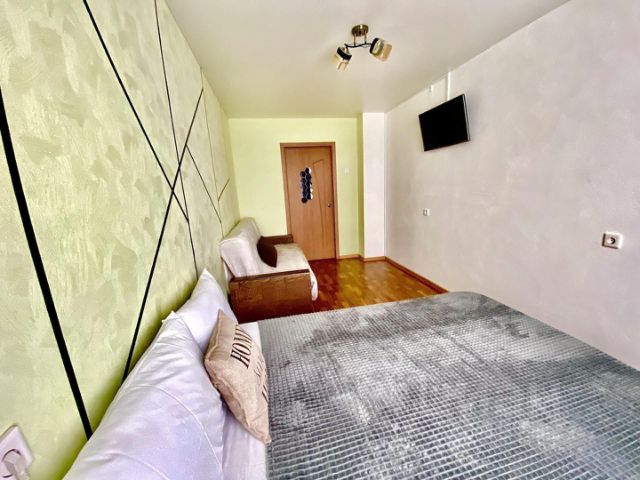 Есть всё необходимое для комфортного проживания 6 человек: 3 раскладных двуспальных дивана, кресло-кровать. Кондиционер, холодильник, микроволновка, стиральная машина, посуда, кухонные принадлежности. Постельное бельё и полотенца. Рядом супермаркеты, остановка автотранспорта. Шумные вечеринки запрещены. Курить можно только на лоджии. Стоимость проживания зависит от количества суток и количества человек.