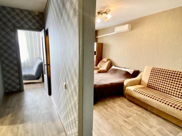 Есть всё необходимое для комфортного проживания 6 человек: 3 раскладных двуспальных дивана, кресло-кровать. Кондиционер, холодильник, микроволновка, стиральная машина, посуда, кухонные принадлежности. Постельное бельё и полотенца. Рядом супермаркеты, остановка автотранспорта. Шумные вечеринки запрещены. Курить можно только на лоджии. Стоимость проживания зависит от количества суток и количества человек.