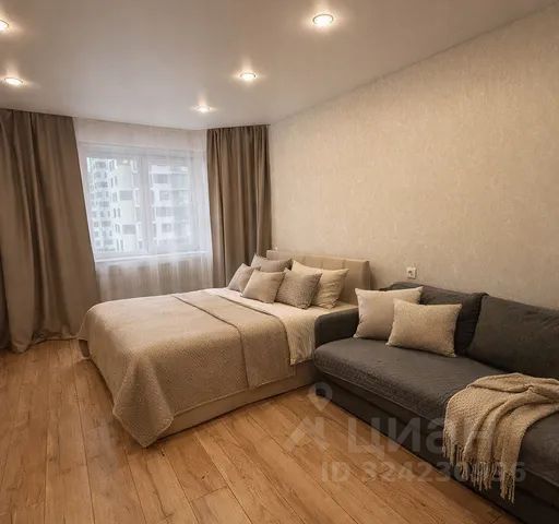 Современная квартира сети Неотель на 16 этаже в новом жилом комплексе Квартал 45 (переулок Славы, 7). Свежий яркий ремонт, панорамные окна, уютный балкон и продуманное оснащение.
