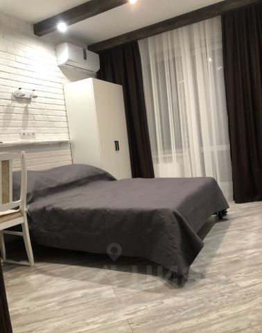 сдается на длительный срок квартира-студия в самом центре города. дизайнерский ремонт, кровать размером king size, матрас Аскона. Полностью меблирована, вся необходимая техника. Закрытая территория, рядом продуктовый магазин, фитнес зал, кафе и рестораны. Будет доступна с 1 февраля 2026