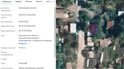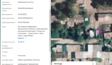 Земельный участок с кадастровым номером 36:10:0100264:622 площадь 35 по адресу Воронежская область, муниципальный район Калачеевский, городское поселение город Калач, город Калач, улица Мира