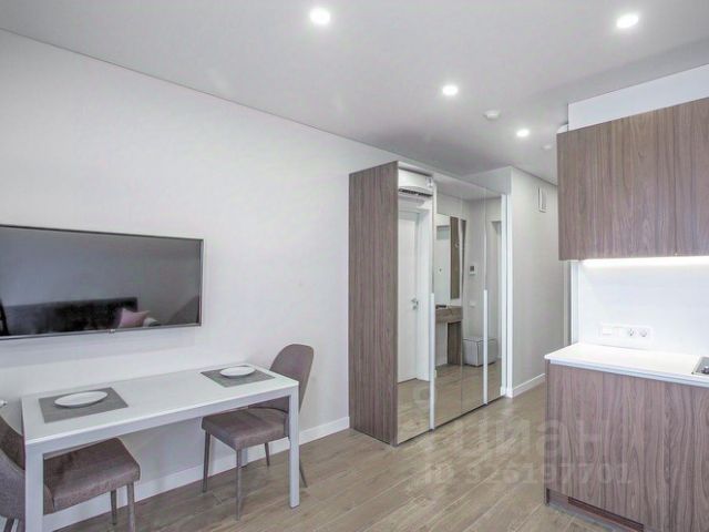 От собственника сдаётся на длительный срок крупногабаритная квартира-студия с современным ремонтом, мебелью и техникой. В комнате: * 2х спальный раскладной диван * телевизор со смарт-тв, приложениями * вместительный шкаф-купе с зеркалом * шторы black out * кондиционер Кухня: * холодильник с морозильной камерой * варочная индукционная панель * духовой шкаф * чайник * микроволновка Санузел совмещен с ванной, стиральная машина. На воду, электричество установлены счётчики, в квартире проведён интернет, wi-fi. Закрытый двор с детскими площадками. Вокруг развитая инфраструктура - пункты выдачи маркетплейсов, магазины в доме и соседних подъездах. Рядом с домом остановка, для автовладельцев - всегда есть свободные парковочные места. Сдаётся некурящим, аккуратным, порядочным людям без животных. Дети обсуждаются. Оплата 23 тыс.руб.+ к/у. Залог 20 тыс.руб., который можно разбить на 2 месяца.